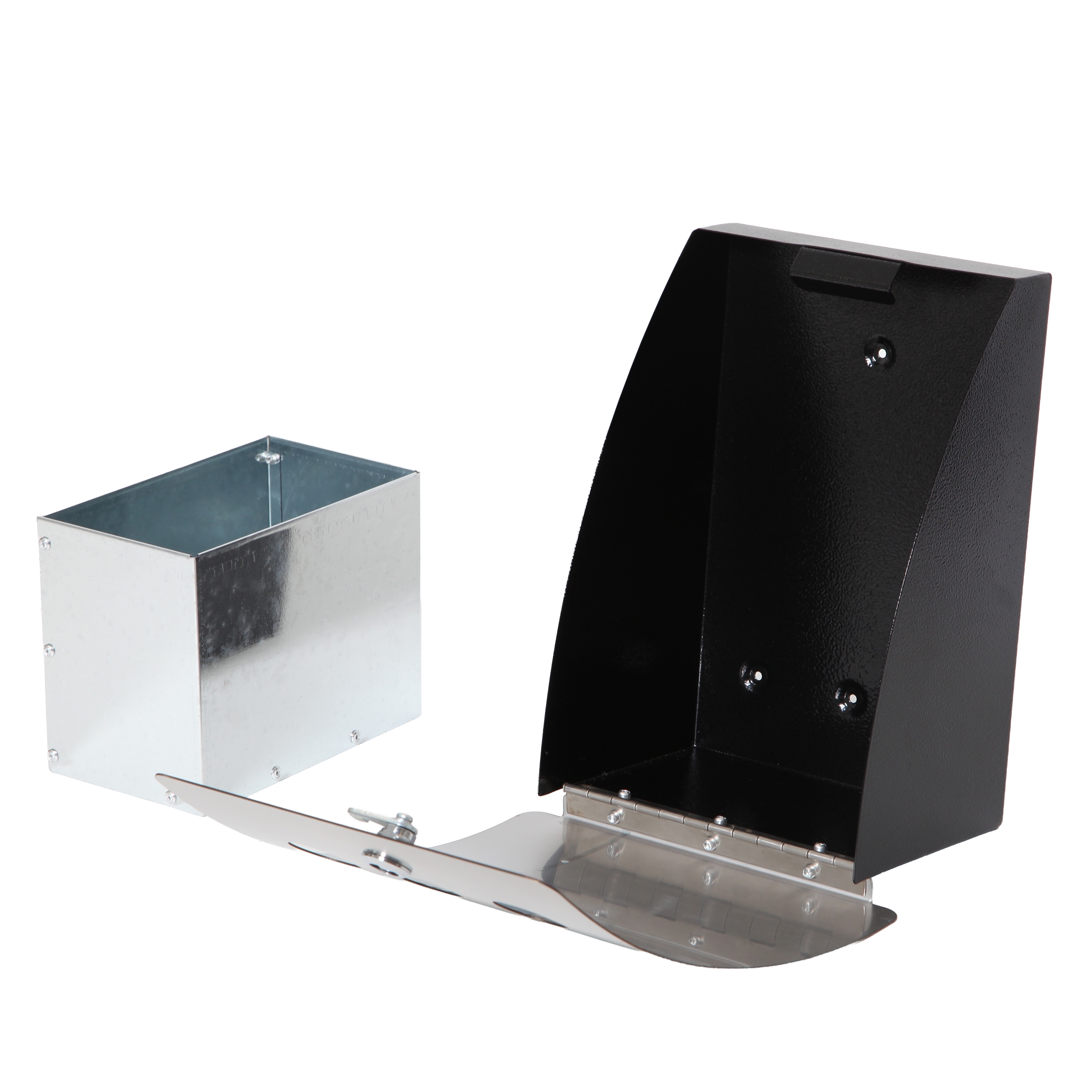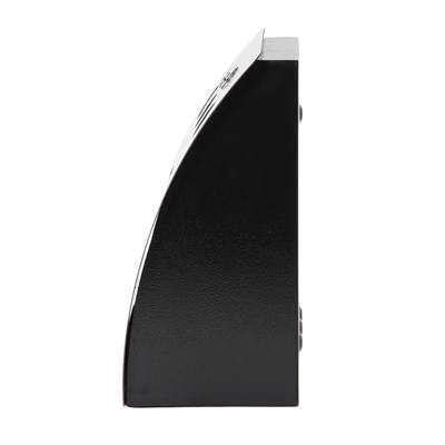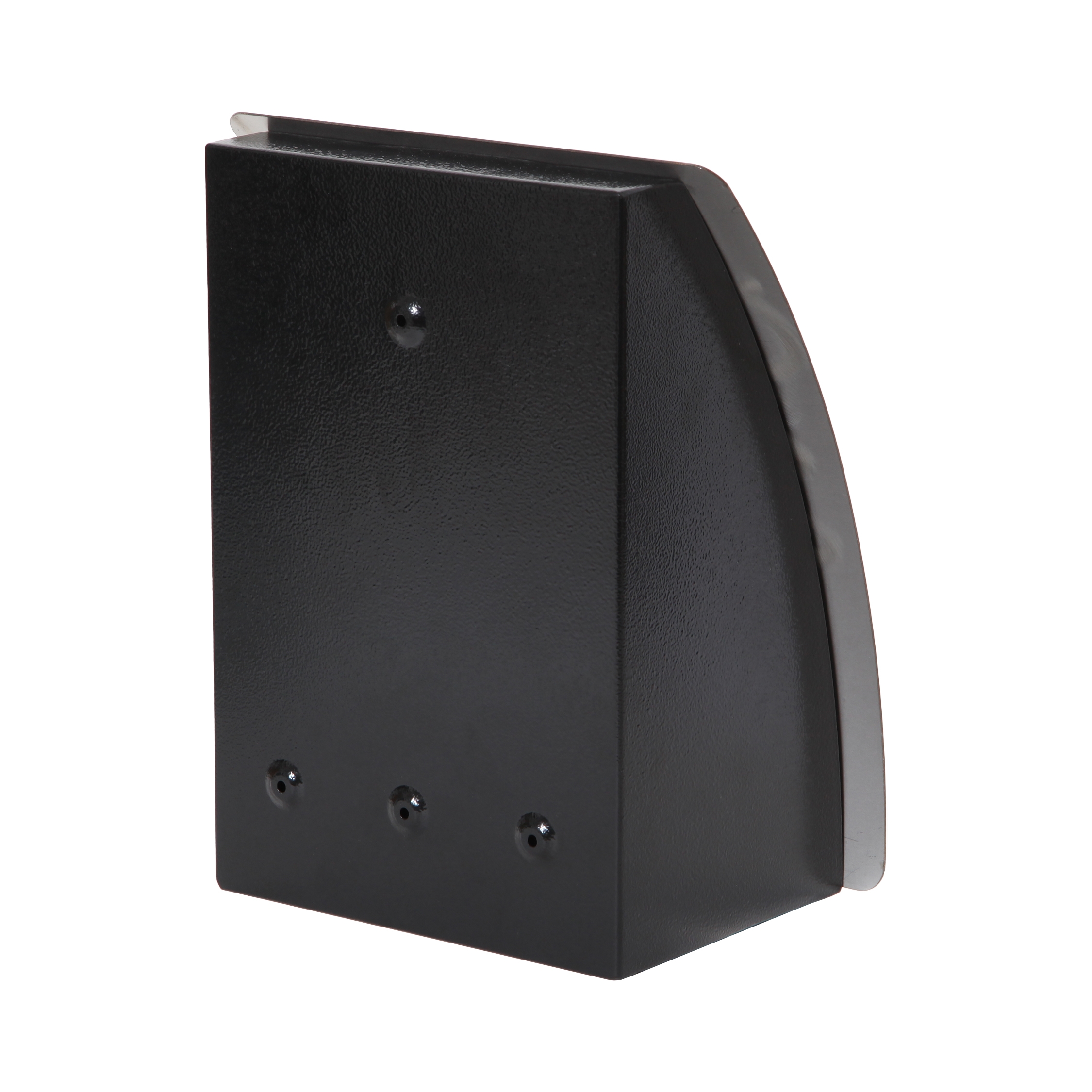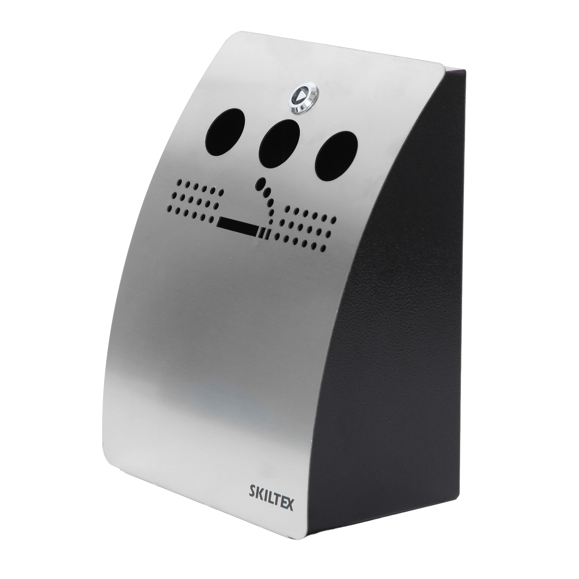 Ein robuster und stilvoller Außen Aschenbecher zur Wandmontage. Die gebogene schwarze Stahlkonstruktion in Kombination mit einer gebürsteten Edelstahlfront verleiht dem Aschenbecher ein hochwertiges Erscheinungsbild und eine besonders hohe Haltbarkeit. Die Front verfügt über drei Öffnungen mit Gitter, die eine einfache und sichere Entsorgung von Zigarettenresten ermöglichen. Der Aschenbecher ist mit einer abschließbaren Front und einem verzinkten Inneneinsatz ausgestattet, der eine hygienische und langlebige Nutzung gewährleistet.