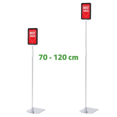 Der Schildhalter ist mit einer extra langen Teleskopstange ausgestattet, die in der Höhe von 70 bis 120 cm verstellbar ist.
