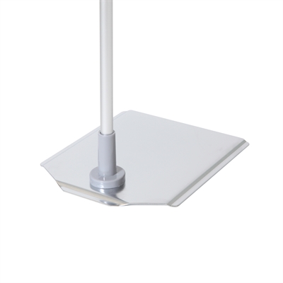 Schildhalter in Topqualität mit einem schönen, schweren und stabilen Metallfuß mit Chromoberfläche, verstellbarer silbereloxierter Aluminium-XL-Teleskopstange (70 bis 120 cm) und schwarz A3-Rahmen aus ABS-Kunststoff.