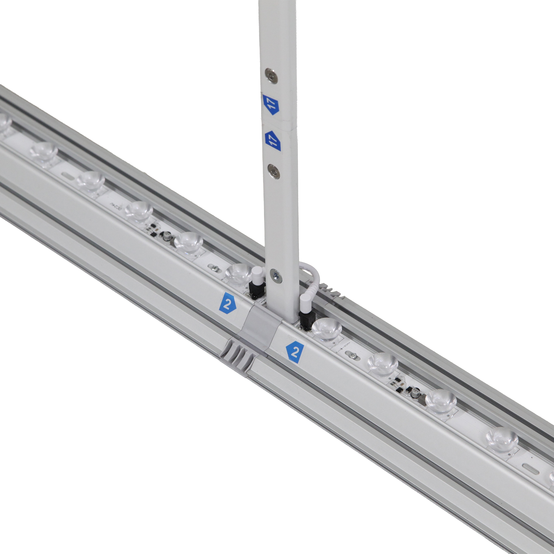 Mit einer schnellen werkzeuglosen und schrittweisen Installation ist unsere BrightBox Double ein fantastisch mobiles Displaysystem für den Einsatz auf Messen und Ausstellungen. Es verleiht jedem Messestand ein schönes und professionelles Aussehen.