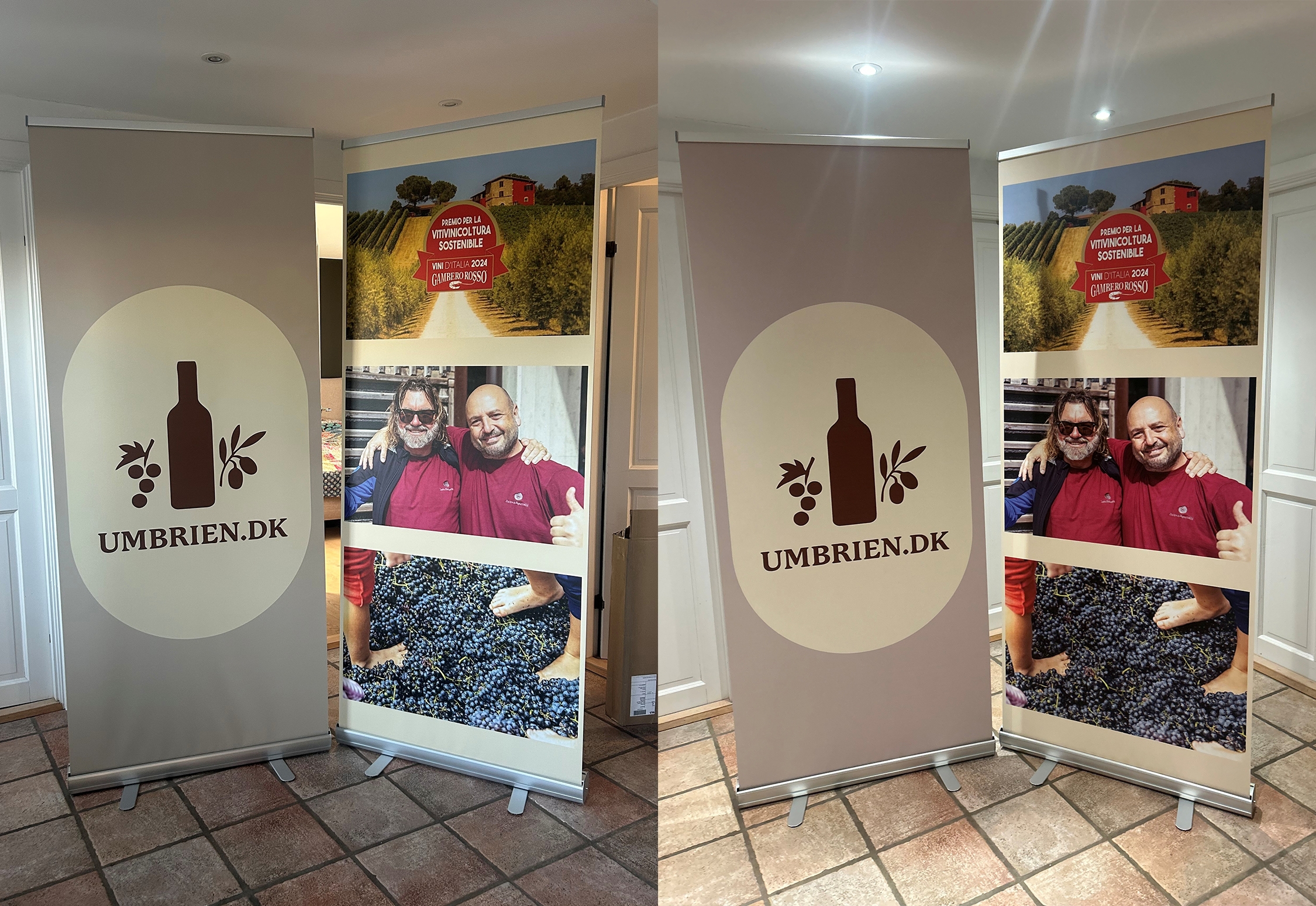 Aufgrund der Qualität und des Preises ist das Business Roll Up unser beliebtestes System für Messen. Dieses Modell wird wird vollfarbig (CMYK) auf 280g B1 Brandsicheren Polyester gedruckt, welches für den Messeeinsatz zugelassen ist und schöne Farben in Fotoqualität bietet. Dieses Modell steht solide und kann mehrmals verwendet werden.