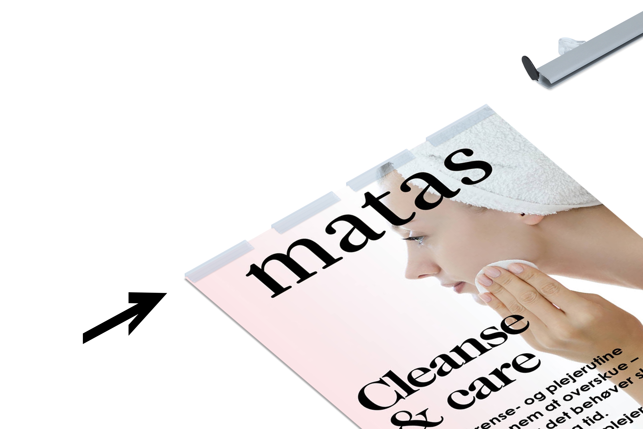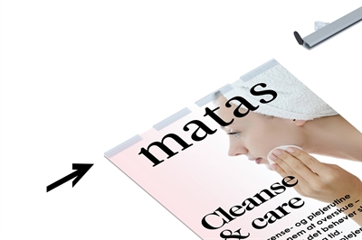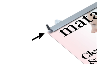 • Durch Drehen der Endkappen können Sie das Plakat einfach hineinschieben