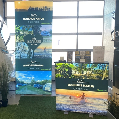 Das Banner wird auf 230g knitterfreien Stoff gedruckt, für ein schönes und knitterfreies Aussehen. Das Banner wird zusammen mit dem Messetisch im dazugehörigen Transportrolley verpackt.
