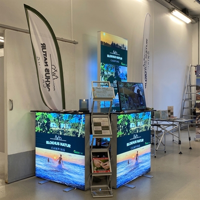 Geniale leichte Textil-Falttheke, die sich perfekt für Messen und Events eignet.