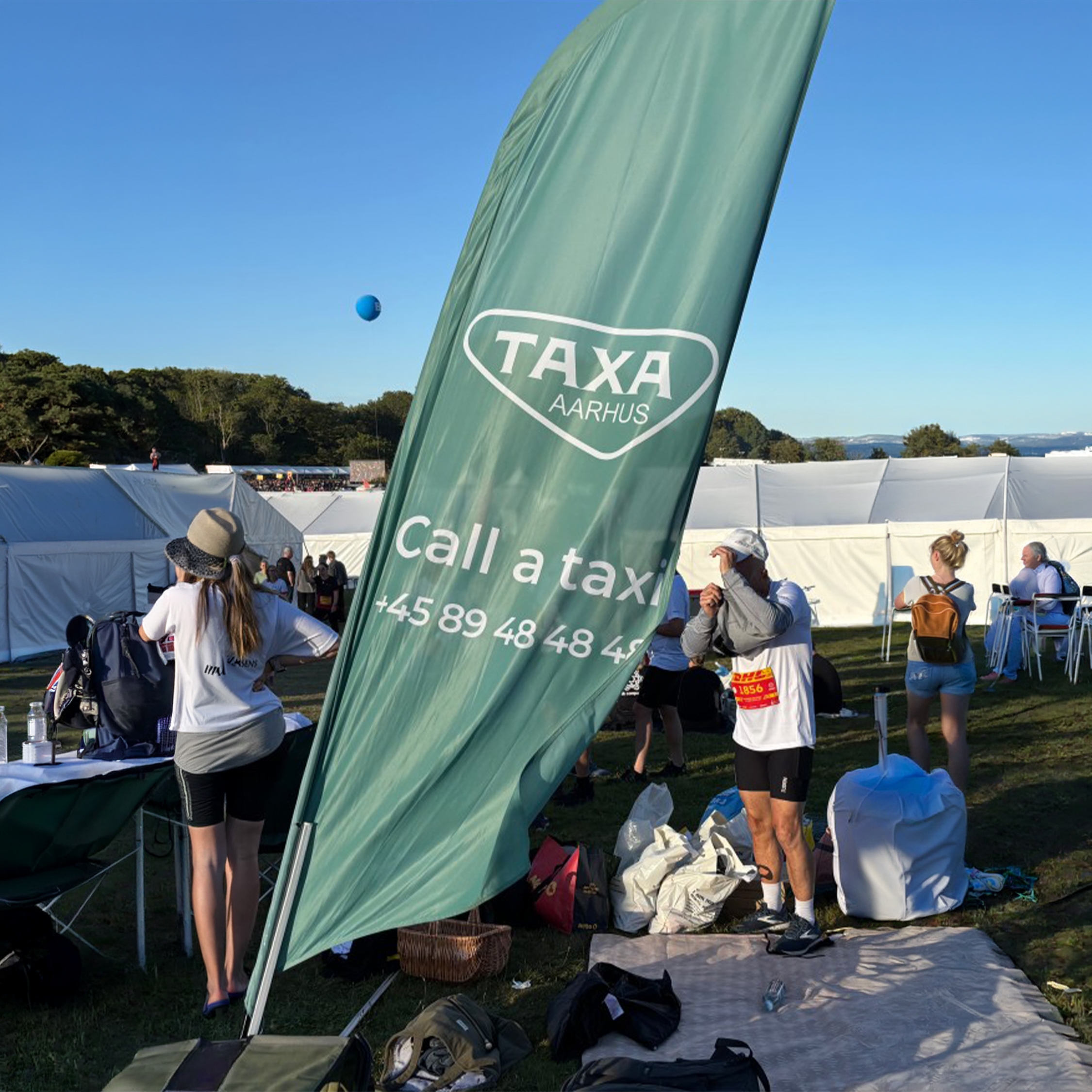 115g B1 Brandsichere BOW (gebogen) Flagge in der Maße 65x194 cm mit Ihrem eigenen Design.