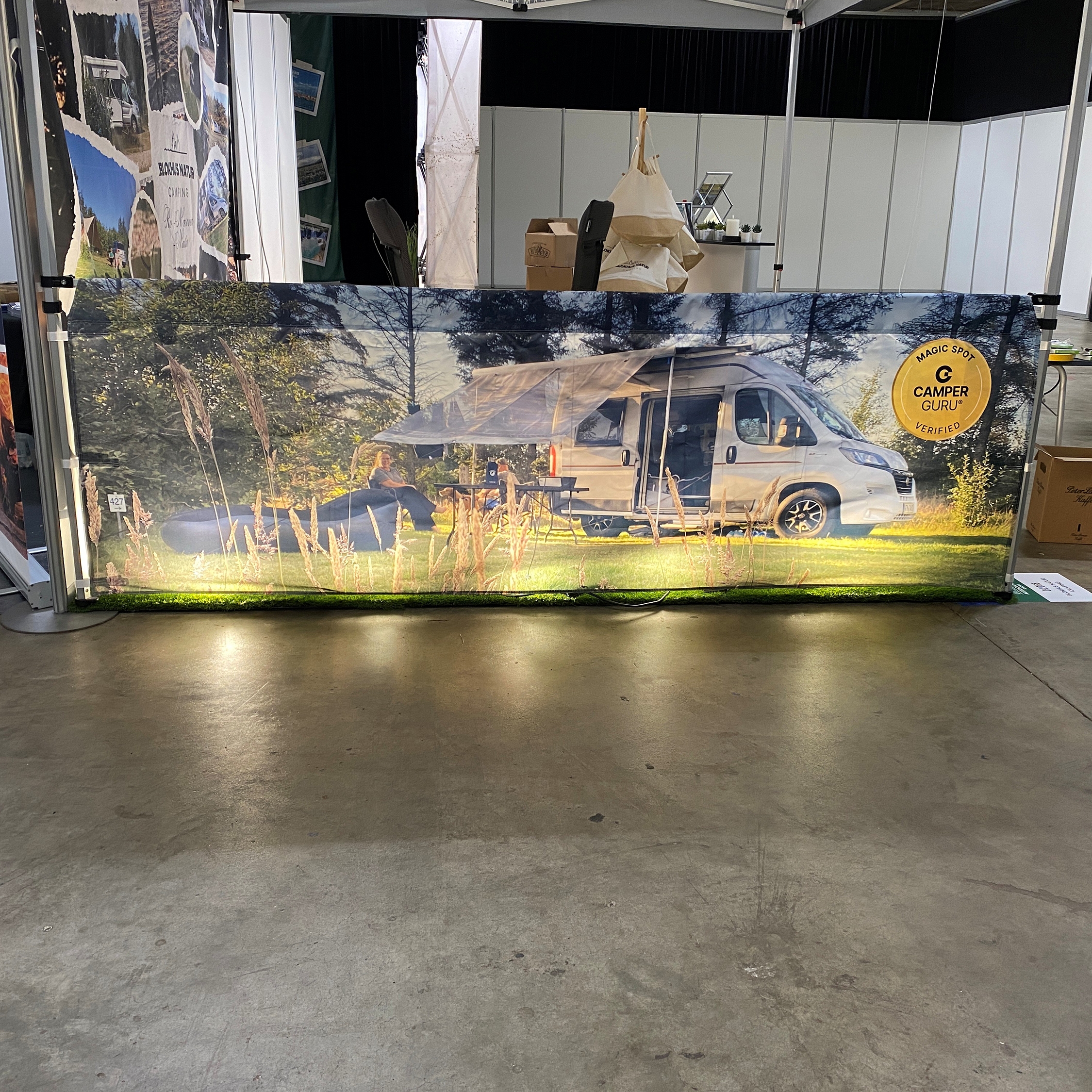 Das Halbwand Kit besteht aus einem Vollfarbbedruckten Halbwandbanner mit Ihrem eigenem Design und einer Halbwand stütze, welche es ermöglicht das Banner an Ihrem SKILTEX 3x3 Werbezelt zu montieren.