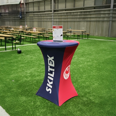 Verleihen Sie Ihrem Event ein professionelles und einladendes Erscheinungsbild mit individuell gestalteten Stehtischhussen. Diese Hussen bestehen aus knitterfreiem Double-Stretch-Gewebe und bieten eine straffe, elegante Passform. Ideal für Messen, Firmenveranstaltungen, Ausstellungen und Empfänge, bei denen Sie Ihre Marke hervorheben oder ein einzigartiges Design präsentieren möchten.