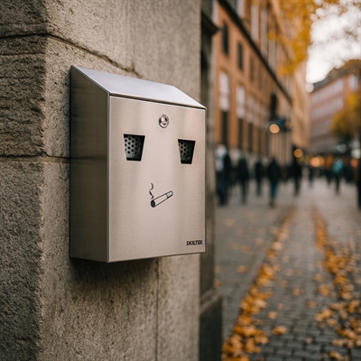 LUX Außenaschenbecher für Wandmontage, hergestellt aus nichtrostendem Edelstahl.