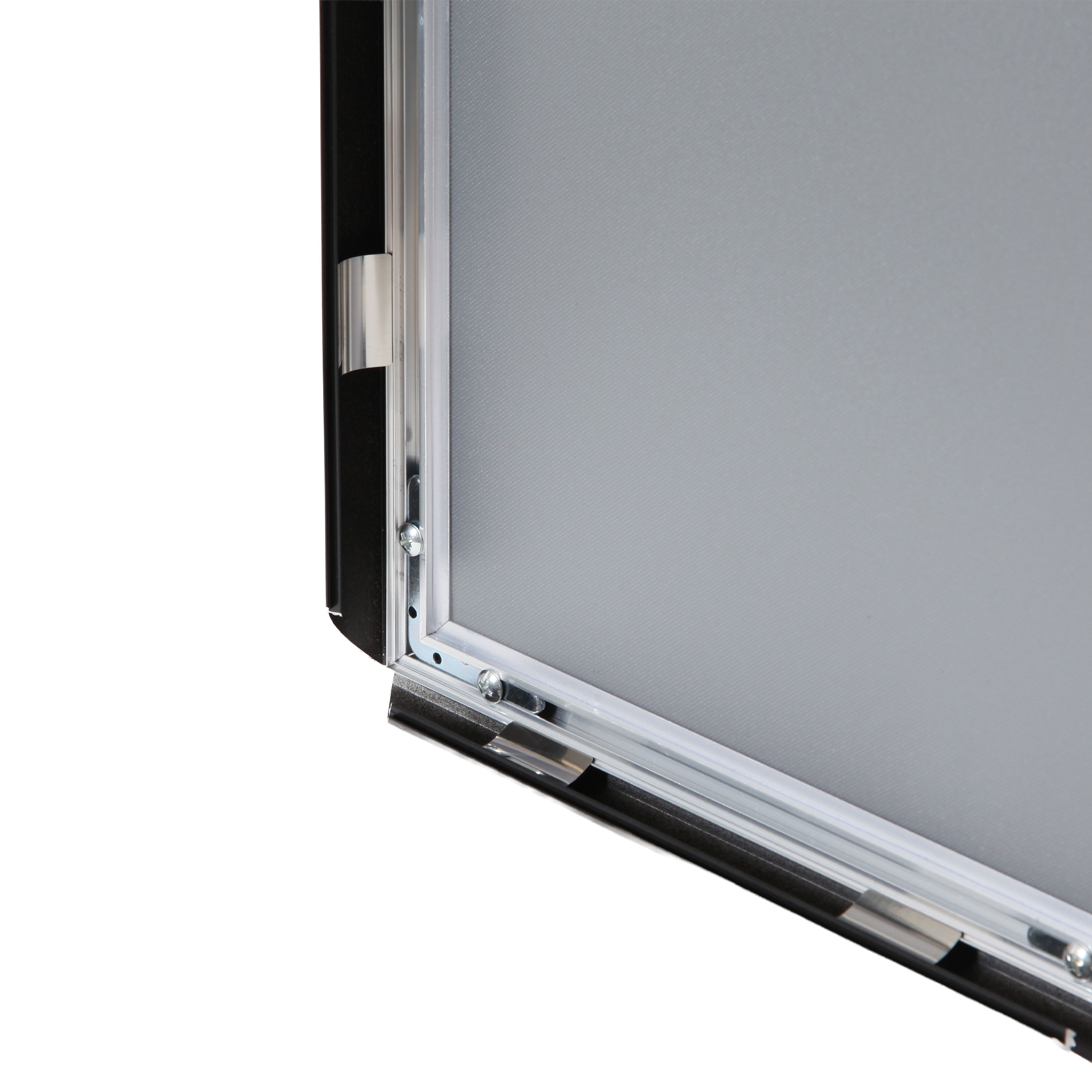 Aluminium-Klapprahmen mit langlebiger, pulverbeschichteter Oberfläche in RAL-9005 Schwarz - lieferbar in der beliebten A4-Klapprahmengröße sowie allen anderen gängigen Größen.