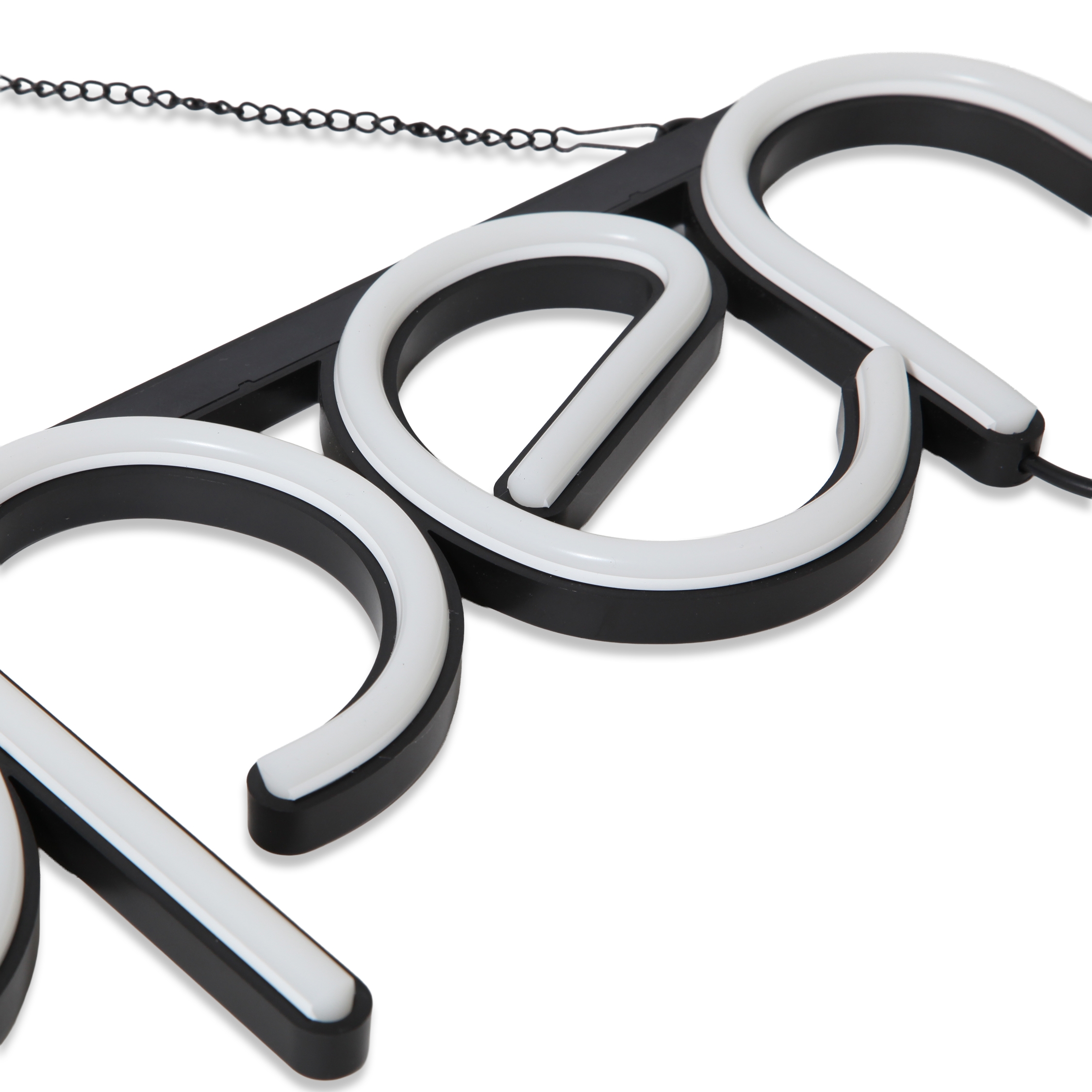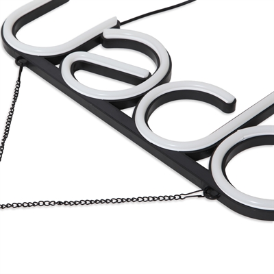 Unsere Schilder sind sowohl tagsüber als auch in der Dunkelheit ein Blickfang. Alle LED-Neonschilder sind leicht und inklusive Kette und Clips, sodass sie leicht aufgehängt werden können.