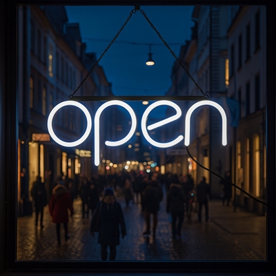 Mit unserem OPEN LED-Neonschild werden mehr Kunden angesprochen, sodass Ihr Umsatz wächst. Wecken Sie Aufmerksamkeit und zeigen Sie allen, dass Ihr Geschäft geöffnet ist! Unser schickes und auffälliges LED-Schild sorgt dafür, dass mehr Kunden Ihr Geschäft betreten. Farbenfrohes und leuchtendes LED-Licht.