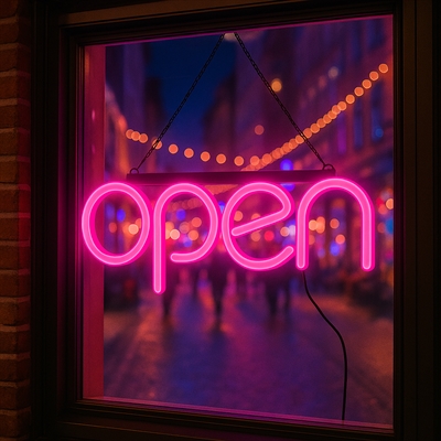 Mit unserem OPEN LED-Neonschild werden mehr Kunden angesprochen, sodass Ihr Umsatz wächst. Wecken Sie Aufmerksamkeit und zeigen Sie allen, dass Ihr Geschäft geöffnet ist! Unser schickes und auffälliges LED-Schild sorgt dafür, dass mehr Kunden Ihr Geschäft betreten. Farbenfrohes und leuchtendes LED-Licht.