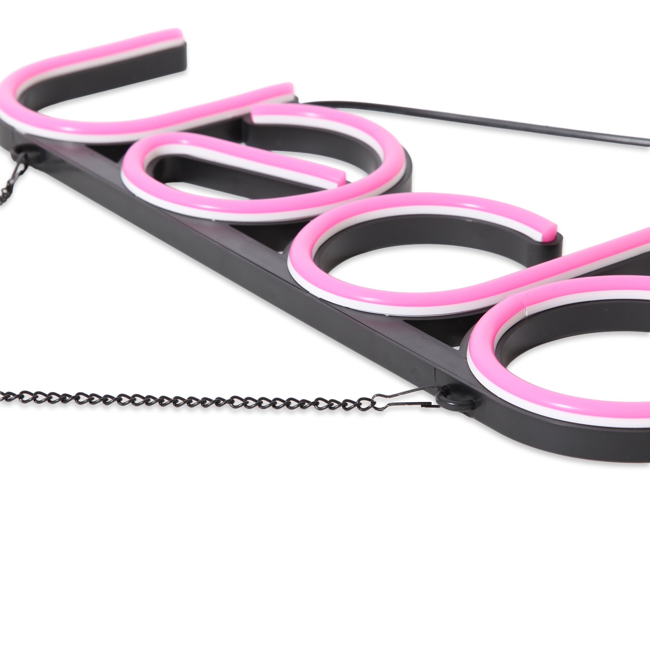 Unsere Schilder sind sowohl tagsüber als auch in der Dunkelheit ein Blickfang. Alle LED-Neonschilder sind leicht und inklusive Kette und Clips, sodass sie leicht aufgehängt werden können.