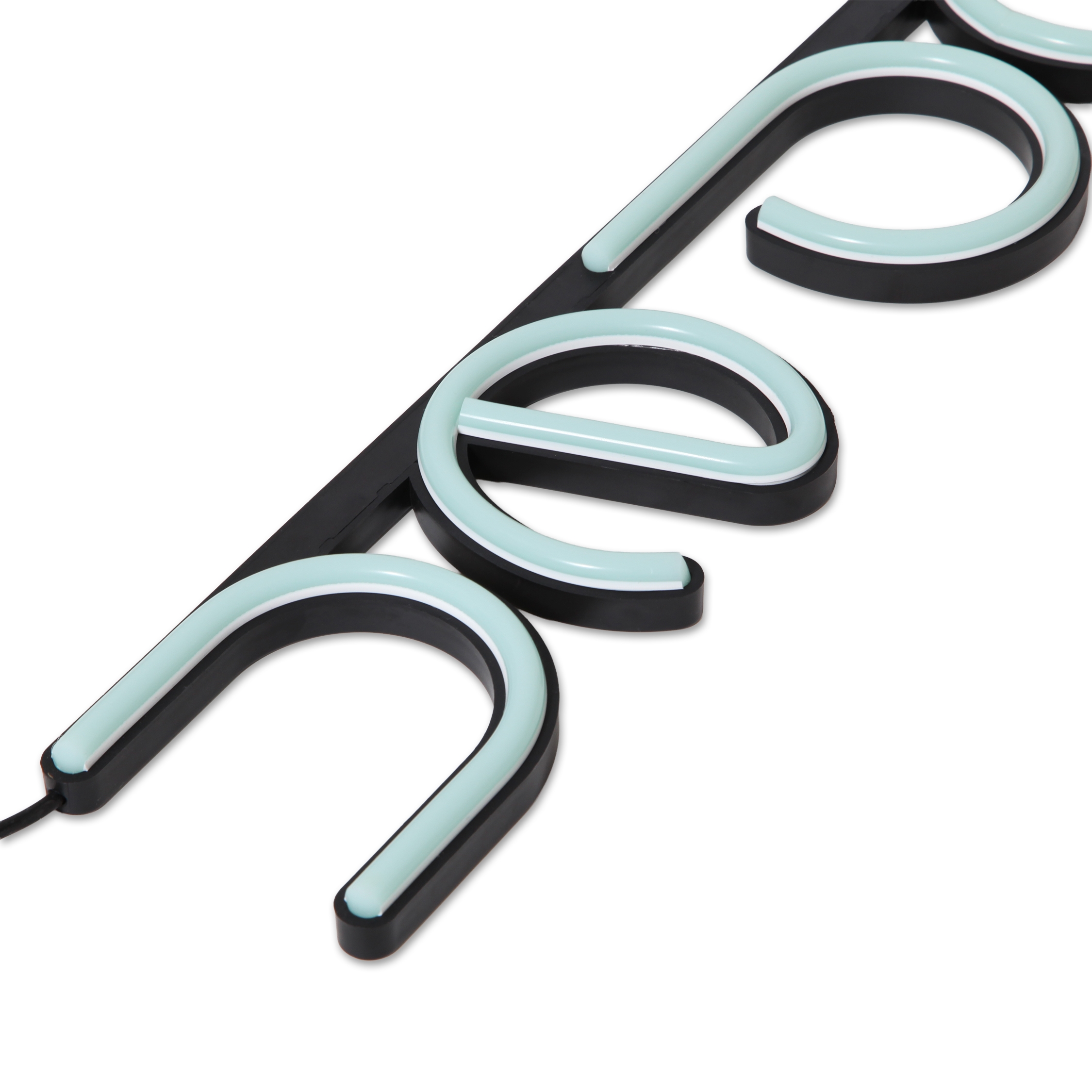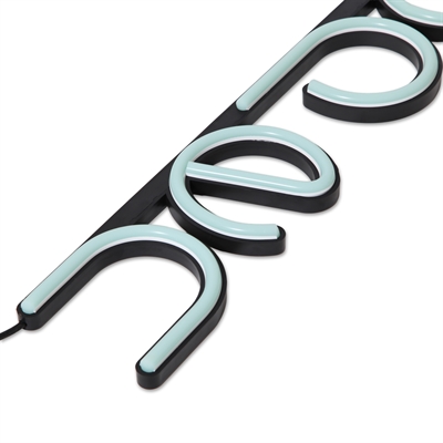 Unsere Schilder sind sowohl tagsüber als auch in der Dunkelheit ein Blickfang. Alle LED-Neonschilder sind leicht und inklusive Kette und Clips, sodass sie leicht aufgehängt werden können.