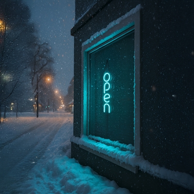 "OPEN" LED Neonschild - Eisblau - Vertikale