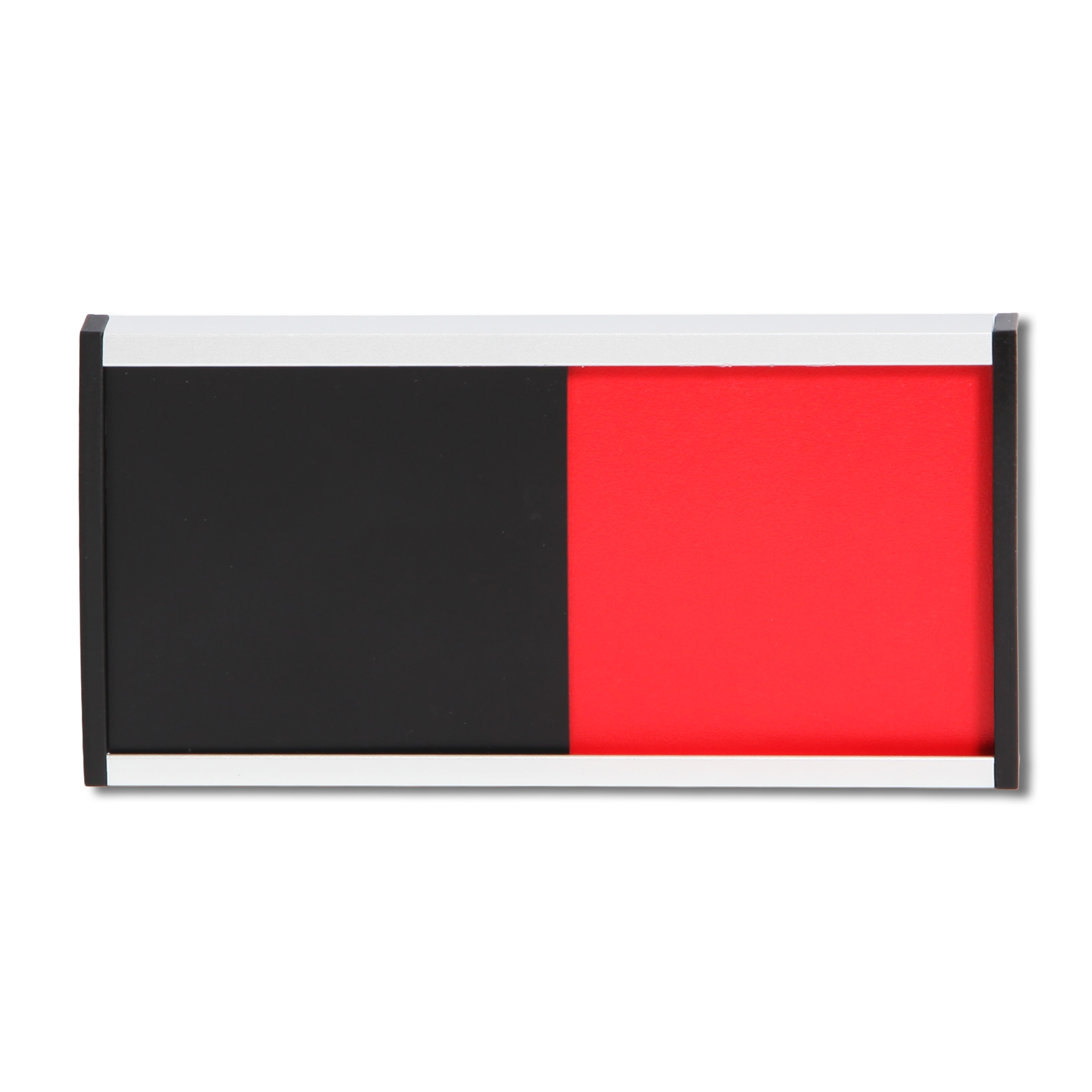 Das Schild besteht aus formgepresstem Aluminium mit schwarzen Kunststoff-Endkappen und überzeugt durch ein modernes, professionelles Design mit hochwertiger Verarbeitung und hoher Langlebigkeit.