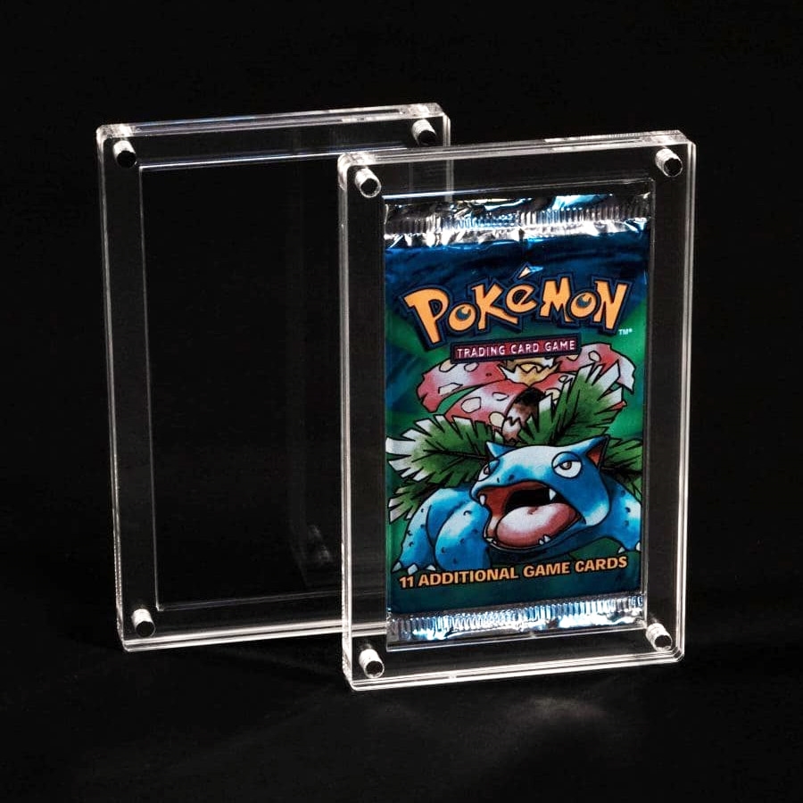 Deine seltenen und Vintage-Boosterpacks sind mehr als nur Sammlerstücke - sie sind Investitionen. Lass sie nicht ungeschützt gegen Staub oder UV-Licht stehen! Unsere Acrylhalterung für ein einzelnes TCG-Pack schützt und präsentiert deine wertvollen Booster auf elegante Weise.