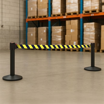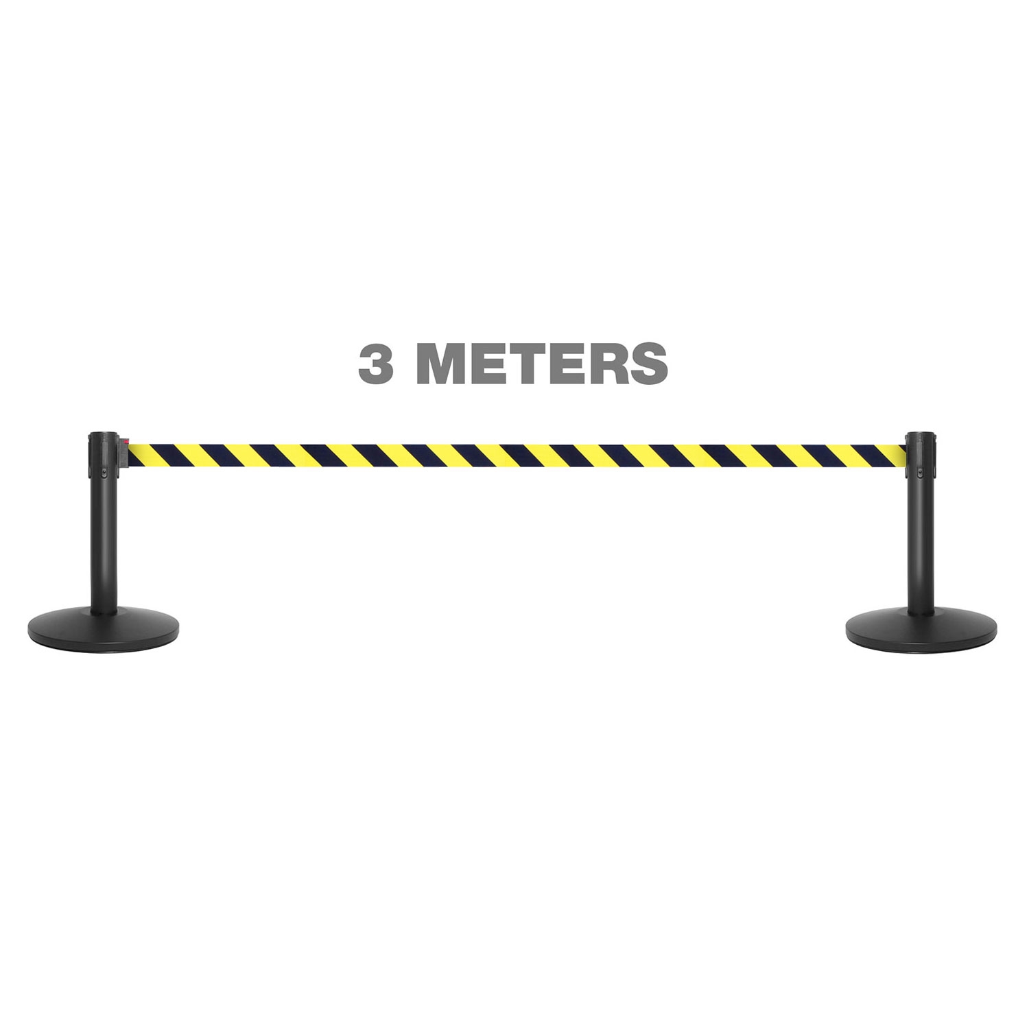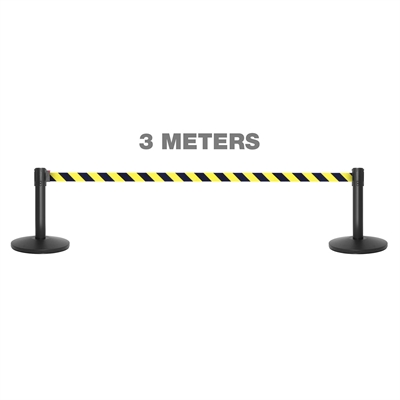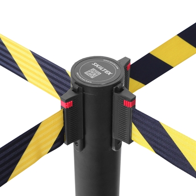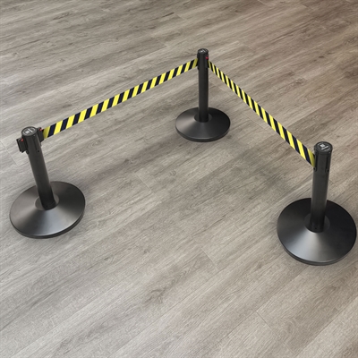 Die 3 Meter langen, ausziehbaren gelb/schwarzen Bänder sind länger als der Industriestandard von 2,3 m. Das bedeutet, dass Sie mit ca. 30% weniger Pfosten auskommen als üblich.