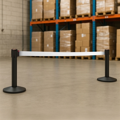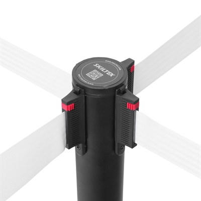 QueueMax Mini Absperrständer schwarz - Weiß Gurtband