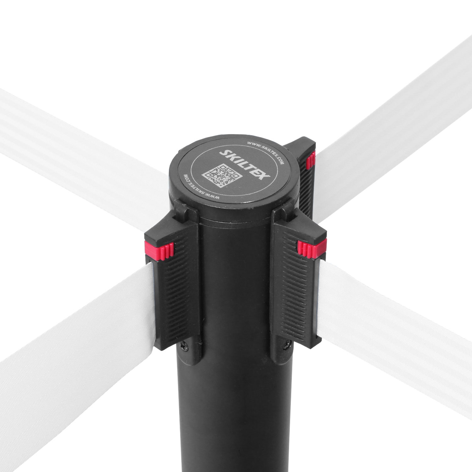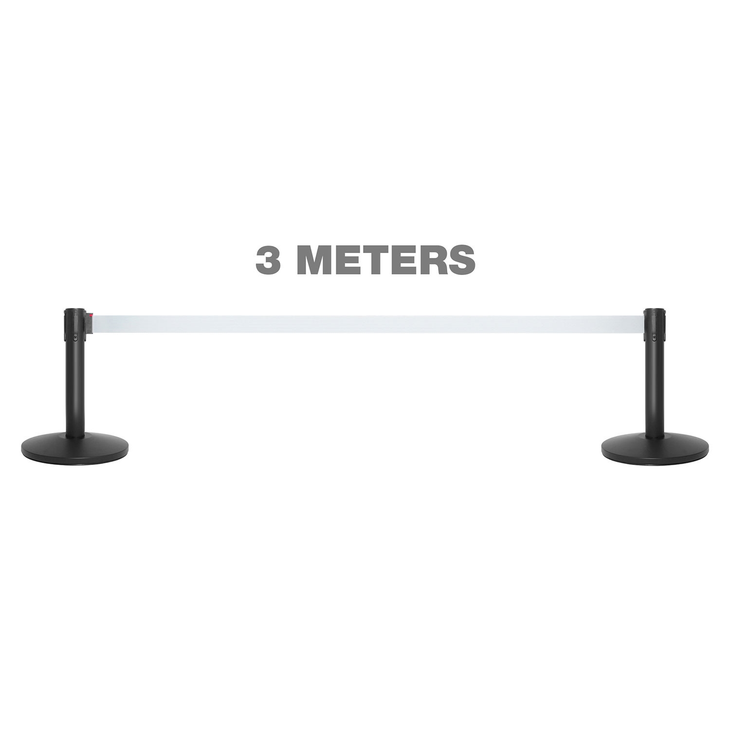Die 3 Meter langen, ausziehbaren weißen Bänder sind länger als der Industriestandard von 2,3 m. Das bedeutet, dass Sie mit ca. 30% weniger Pfosten auskommen als üblich.