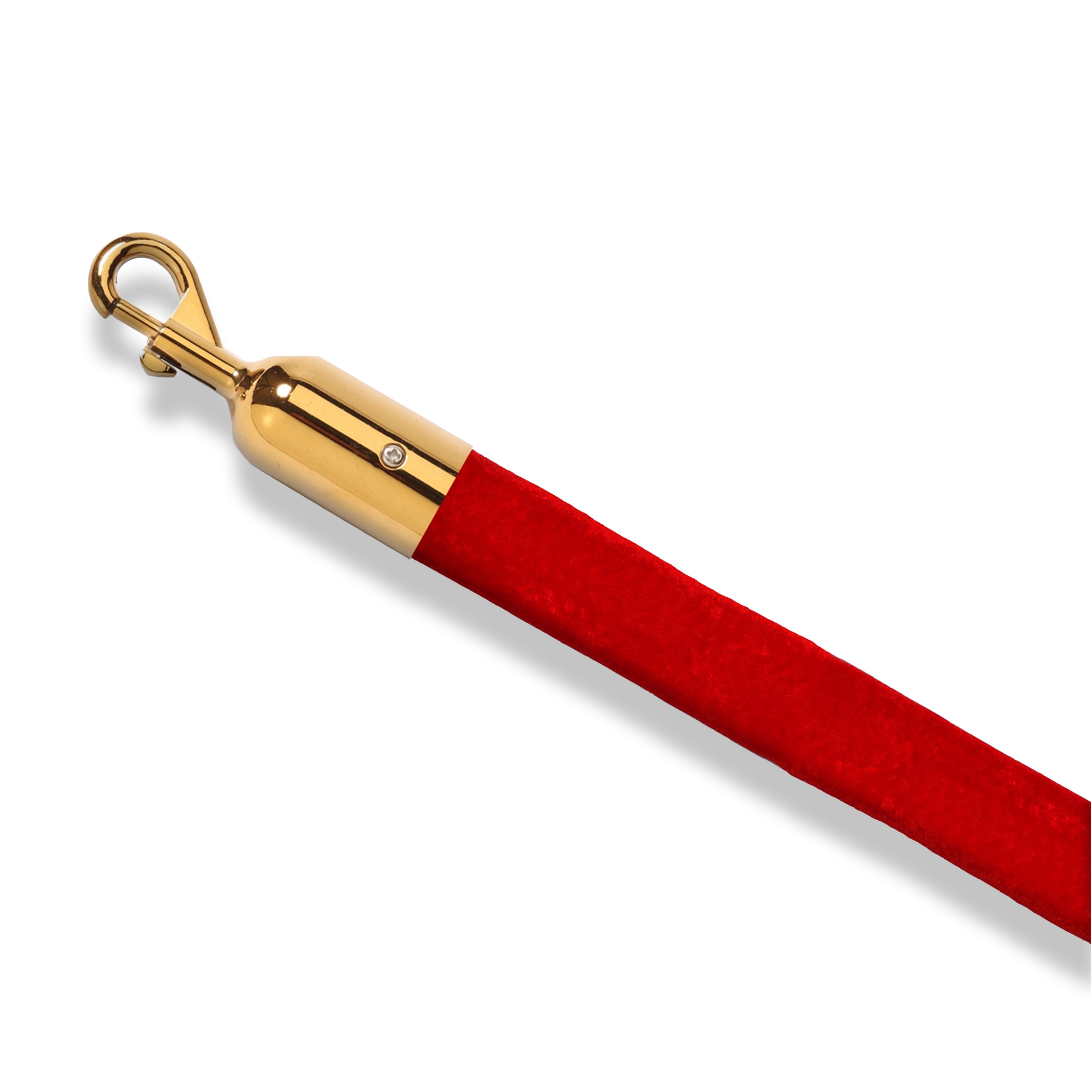 Exklusive VIP Absperrkordel mit weichem rotem Samt inklusive goldenem Klickverschluss. Passend zu unseren Gold RopePro Absperrstolper.