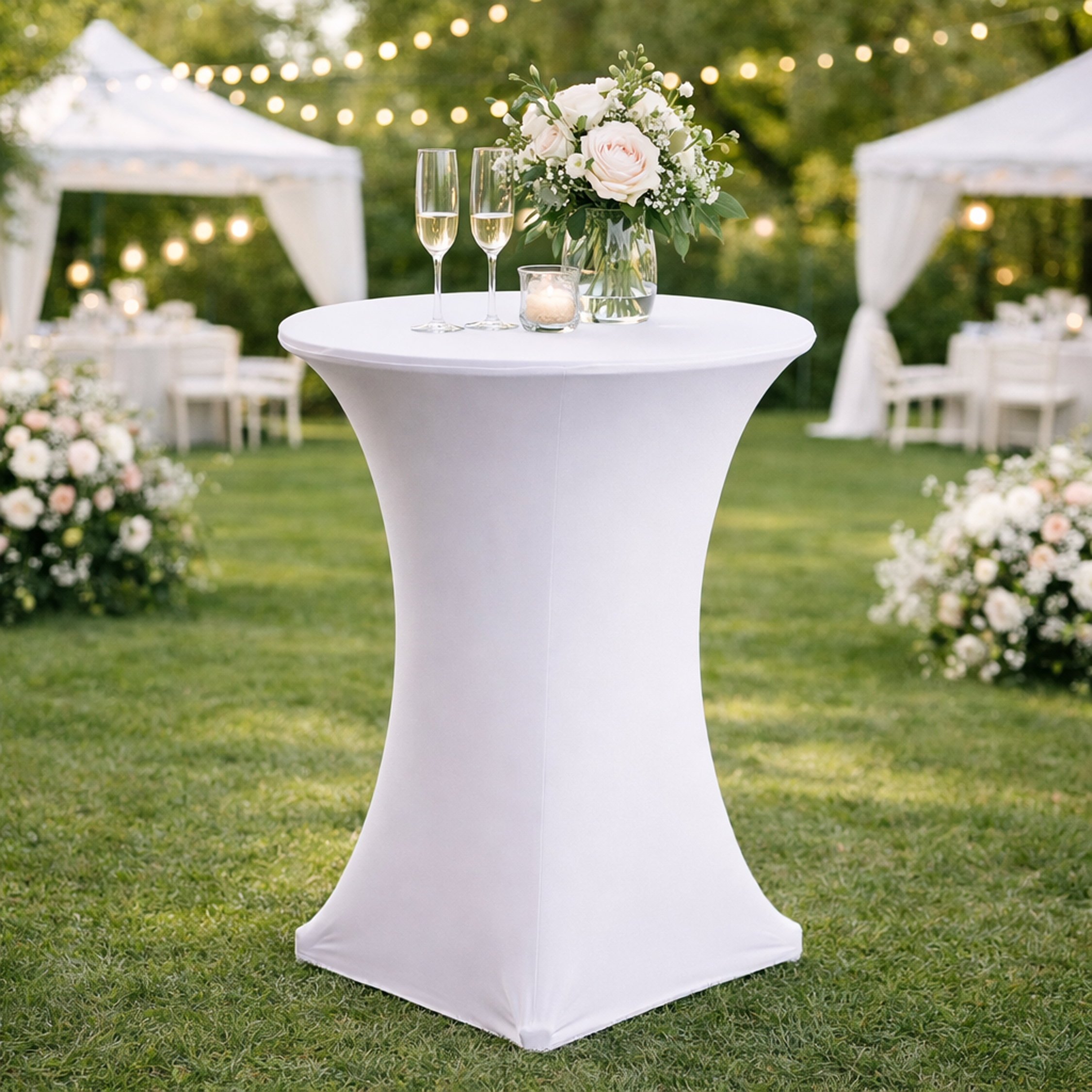 Runder Stehtisch / Klapptisch - Inkl. weißem Stoffbezug