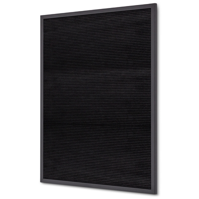 Unsere schwarze Buchstabentafel ist ein stilvolles und vintage-inspiriertes Designobjekt mit schwarzem Rahmen und schwarzer Filzoberfläche.