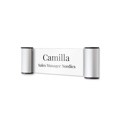 Exklusives Informationsschild in modernem, schlichtem Design, das sich in jede Umgebung einfügt. Der Inhalt kann in wenigen Sekunden selbst ausgetauscht werden.