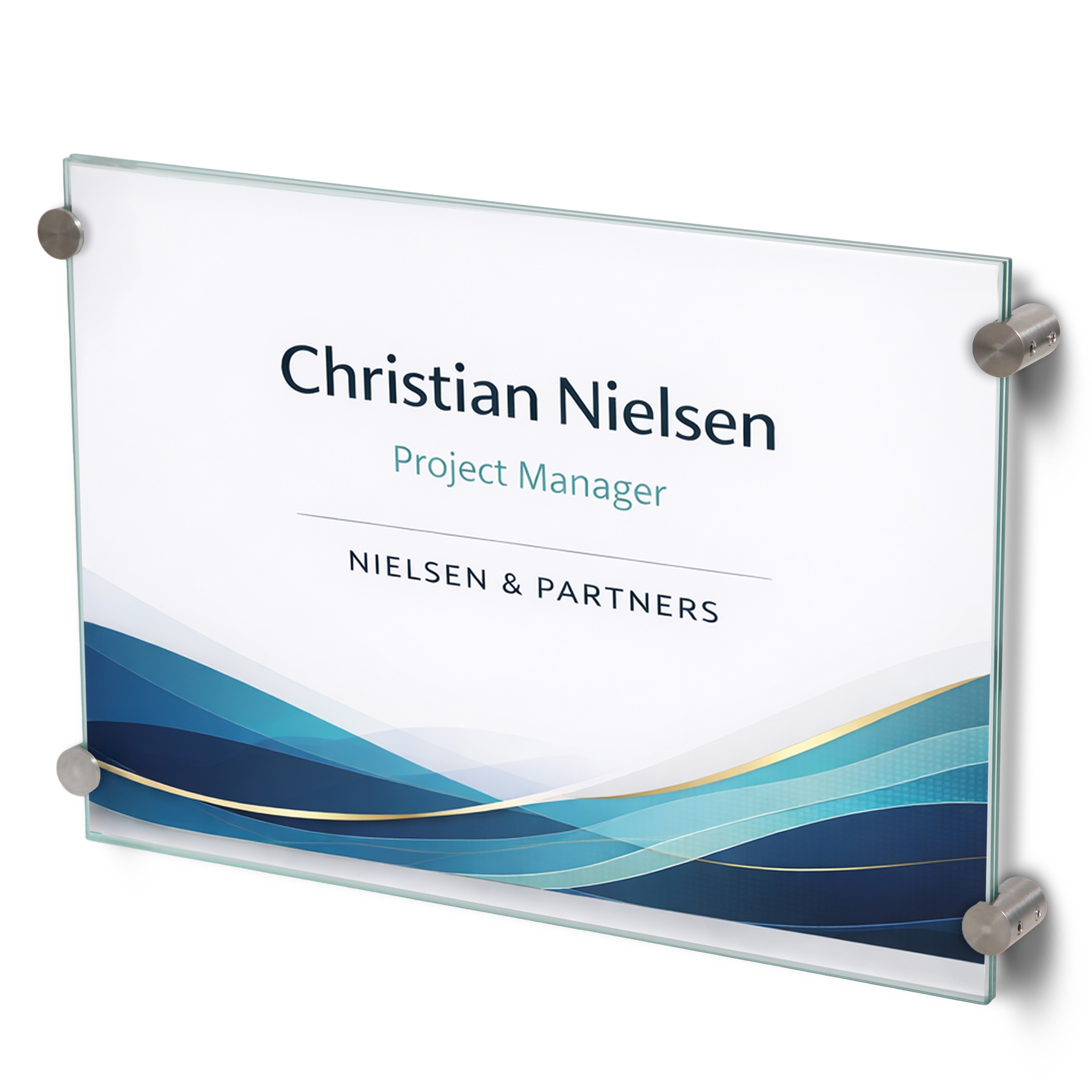Ein stilvolles Glasschild für Büros, Besprechungsräume, Praxen und andere professionelle Bereiche.