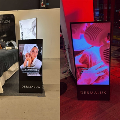 Dieses digitale A-Schild wird einsatzbereit mit einem professionellen 43" Samsung 4K UHD Display (QM43C) und einem MagicINFO™-Player geliefert.