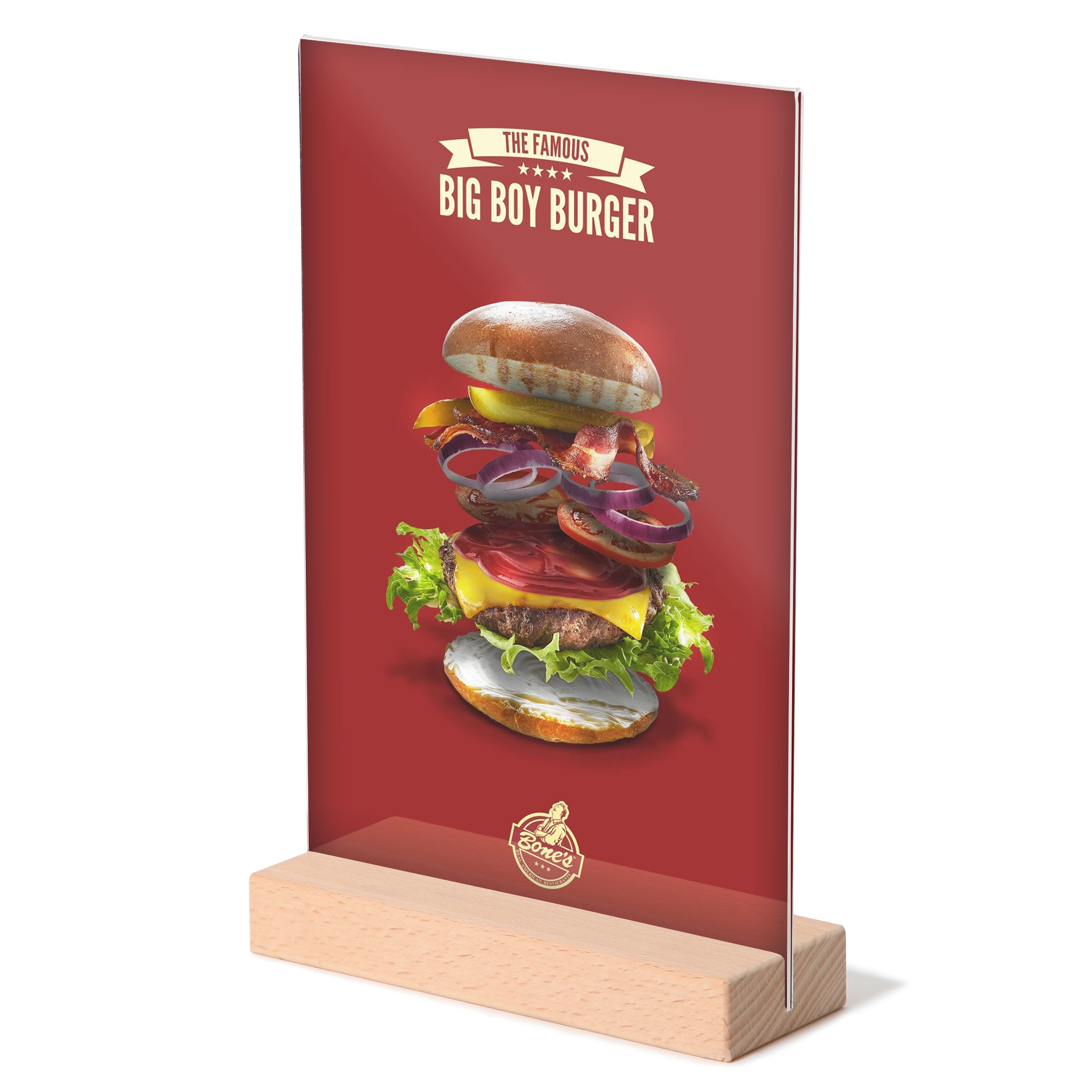T-Ständer Hochformat Acrylschilder mit Holzfuß