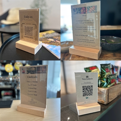 Diese T-Ständer mit Holzfuß sind ideal, um Menüs, Angebote oder Werbeanzeigen auf elegante Weise zu präsentieren. Der robuste Buchenholzsockel vereint Funktionalität und Ästhetik und macht sie perfekt für den Einsatz in Cafés, Restaurants, Hotels und Kantinen.