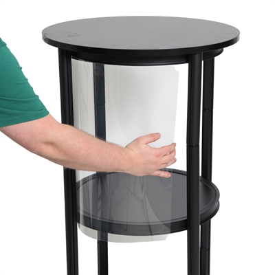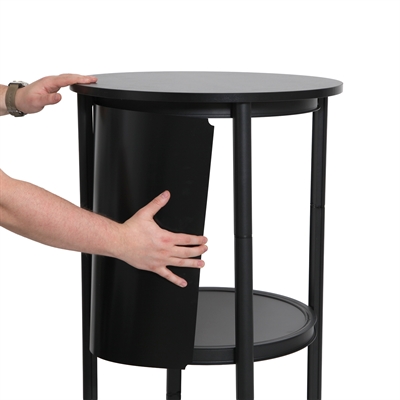 Super smarte, transportable schwarze Spiral-Vitrine, die sich zusammenklappen und bequem in der mitgelieferten Tasche transportieren lässt. Die leichte und stabile Aluminiumkonstruktion macht sie ideal für Messen, Ausstellungen und Events. Unsere Spiral-Vitrine lässt sich schnell und einfach auf- und abbauen – komplett ohne Werkzeug.