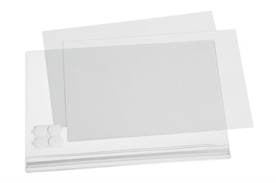 Die Befestigung erfolgt mithilfe der vier mitgelieferten selbstklebenden Pads, die sich rückstandslos entfernen lassen und eine individuelle Platzierung der kristallklaren Sichttasche ermöglichen.