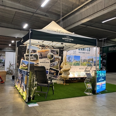 Dieses Werbezelt besteht aus sehr haltbaren Komponenten, die allen Wetterbedingungen standhalten, wodurch dieses System für den Außenbereich geeignet ist.