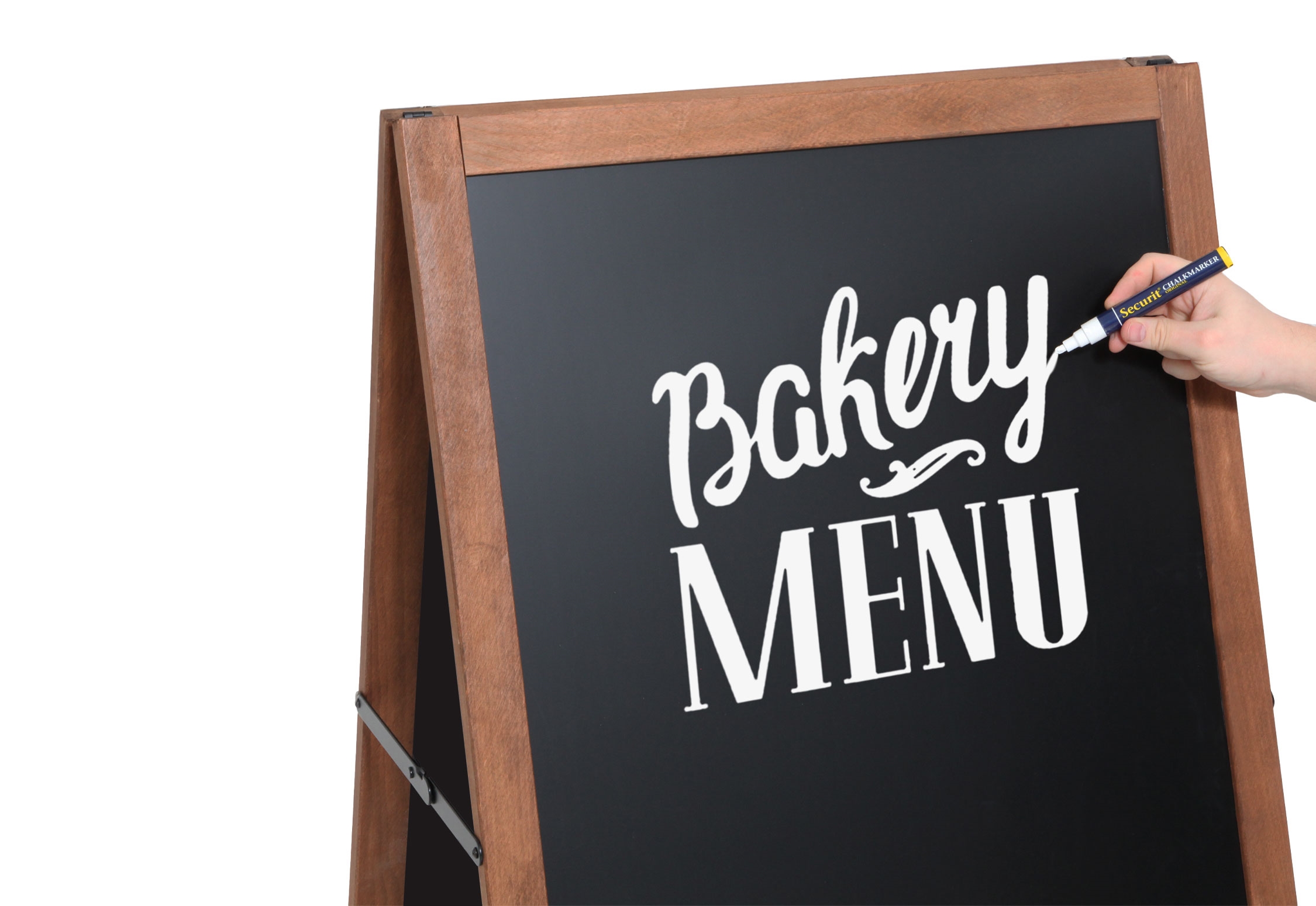 Bei Verwendung wasserfesten Kreidemarker mit Securit®️ Cleaner Spray zu reinigen.