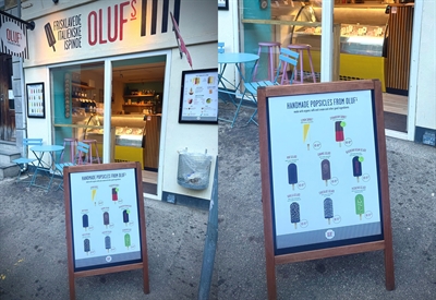 Dieses vielseitige Schild kann beides, als traditionaler Kundenstopper mit 50x70 cm Plakaten als auch als Tafelschild verwendet werden, das mit Kreide oder Kreidemarkern beschrieben werden kann.