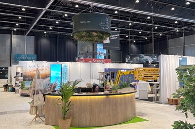 Wird in einer schwarzen Tragetasche geliefert, die den Transport und die Aufbewahrung erleichtert. Perfekt für die Verwendung auf Messen, Ausstellungen und Events.